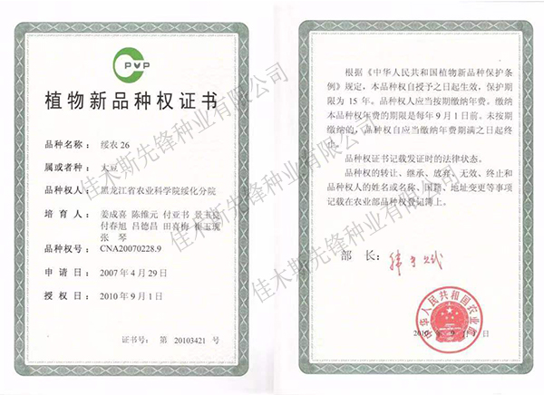 走進我們 COME INTO US 您現(xiàn)在的位置:網(wǎng)站首頁 > 走進我們 >資質(zhì)榮譽 公司簡介 企業(yè)文化 領導致辭 資質(zhì)榮譽 農(nóng)作物種子生產(chǎn)經(jīng)營許可證(副證) 農(nóng)作物種子生產(chǎn)經(jīng)營許可證(副證) 農(nóng)作物種子生產(chǎn)經(jīng)營許可證(副證) 黑農(nóng)48省農(nóng)作物品種合格證書 黑農(nóng)48植物新品種權證書 綏農(nóng)26植物新品種權證書 共32條記錄 當前為第2頁/共6頁上一頁1234...6下一頁